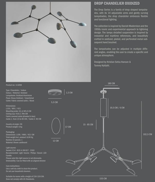 101 Copenhagen Drop Chandelier - Oxidized