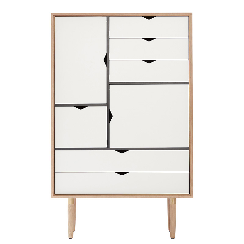 aus neuem und klassischen Design. Das funktionelle Möbelstück S5 bietet 2 Türen und 6 Schubladen. Es ist aus massiver Eiche, massivem Nussbaum oder schwarz erhältlich.