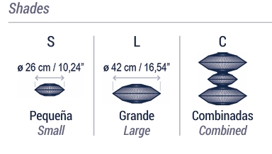 Länge: Lampe 101cm, Gesamtlänge max.200cm, Ø 26cm und Ø42cm im Wechsel kombiniert