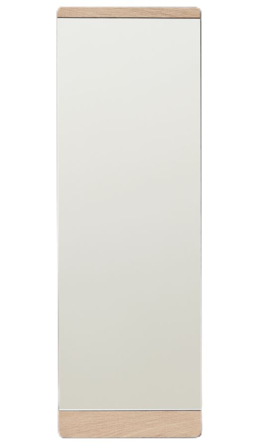 «Wir wollten einen klassischen und schmalen Spiegel mit sichtbaren Holzdetails machen, die ihn von der Wand abheben. Die flachen Holzplatten oben und unten verleihen dem Spiegel einen warmen Ausdruck, da die Holzmaserung zu sehen ist. Die Holzleisten auf der Spiegelrückseite sind etwas dicker, was für einen leichten Schatten an der Wand sorgt.» Design by: Jonas Hermann, Hermann Studio