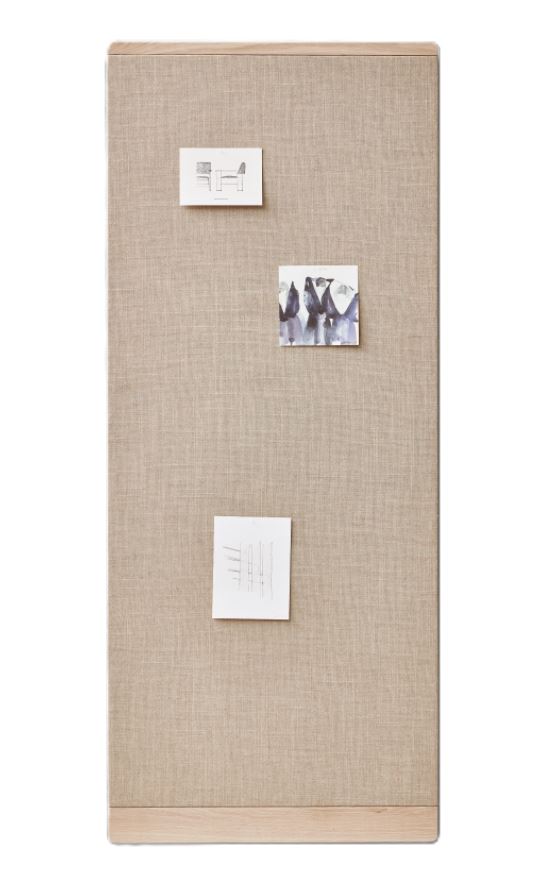 «Wir wollten eine Pinnwand mit einem warmen und weichen Look machen, bei dem der Stoff zur Gemütlichkeit des Eichenholzes passen sollte. Der Rahmen der Pinnwand hat einen grossen Radius auf der Rückseite, der sie mit einem weichen Schatten von der Wand abhebt.» Design by: Jonas Hermann, Hermann Studio