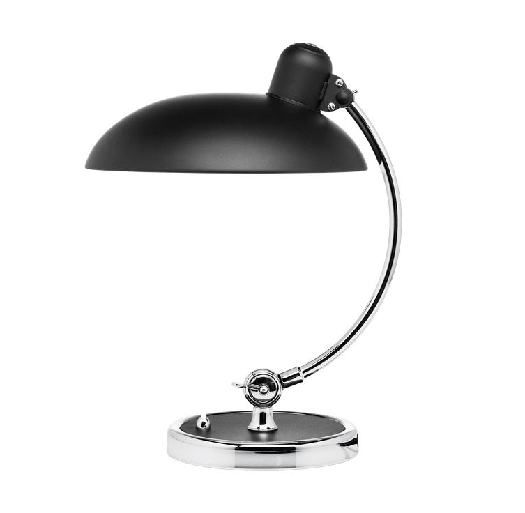 KAISER idell ist original Bauhaus Design. Die Serie basiert auf einer weltweit patentierten Drehlager-Verbindung und dem charakteristischen Fassungsdom mit "ORIGINAL KAISER idell" Prägung. Die Leuchten werden aus Stahl und Messing hergestellt und werden in entweder Hochglanz oder Mattlack handgemalt. Die Chromelemente der Leuchten sind poliert und aus silbergelötetem Messing. Die neigbar Tischleuchte ist erhältlich in schwarz, mattschwarz, weiß, dunkelgrün und rubinrot.