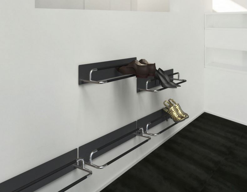 RADA ist nicht nur ein Schuhregal mit einem besonders minimalistischen Design. Dieses einzigartige Design ermöglicht es, die Schuhe auf zwei verschiedene Weisen zu platzieren. Egal ob Damenschuhe mit Absätze, Stiefel oder Sportschuhe.