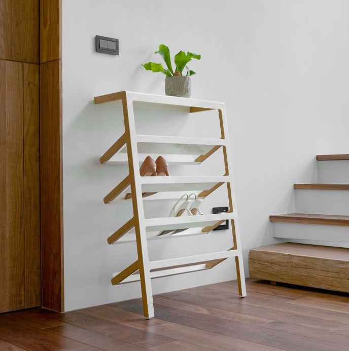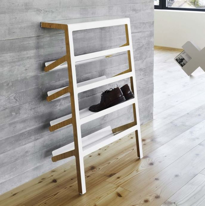 Denn das offene Anlehnregal Mila ist ein Schuhregal, das nichts zu verstecken hat. Schon gar nicht seine aussergewöhnliche Form und den spannenden Kontrast der Materialien. Wir beraten Sie gerne.