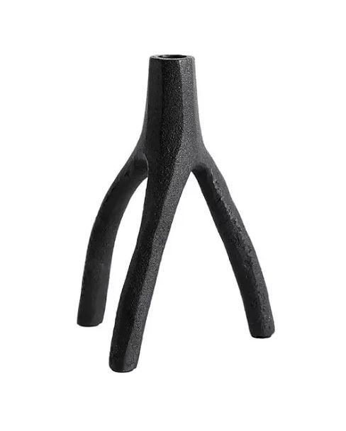 Der Kerzenständer Aion XL ist aus schwarz lackiertem Gusseisen gefertigt und hat einen skulpturalen Ausdruck, der Zweige aus der Natur imitiert.