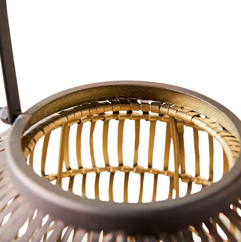 Raito ist eine Serie von Eisenlaternen für den Innenbereich, welche eine gemütliche Atmosphäre schaffen. Die Laternen sind außen braun und innen mit einer vergoldeten Beschichtung versehen, die den Glanz und die Wärme des Kerzenlichts verstärkt und der Laterne ein antikes Finish verleiht.