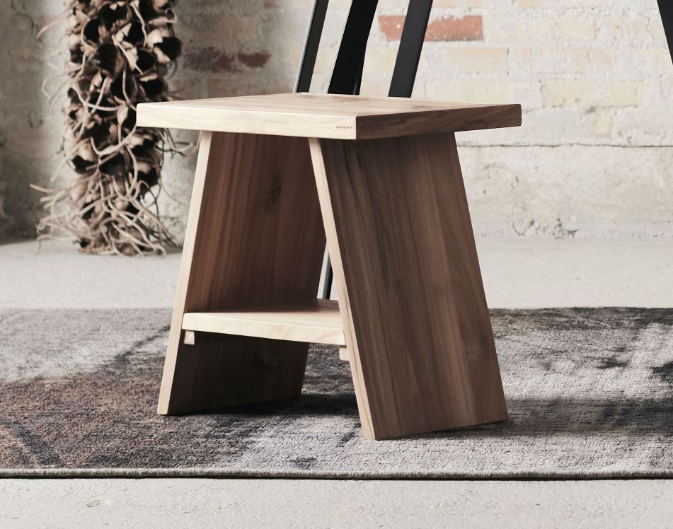 Der einzigartige Tera Hocker ist aus Teakholz gefertigt, das dem Hocker einen schönen Glanz verleiht. Der Hocker ist mit einer Ablagefläche versehen, die als Stauraum genutzt werden kann und dem Hocker einen spannenden Ausdruck verleiht.