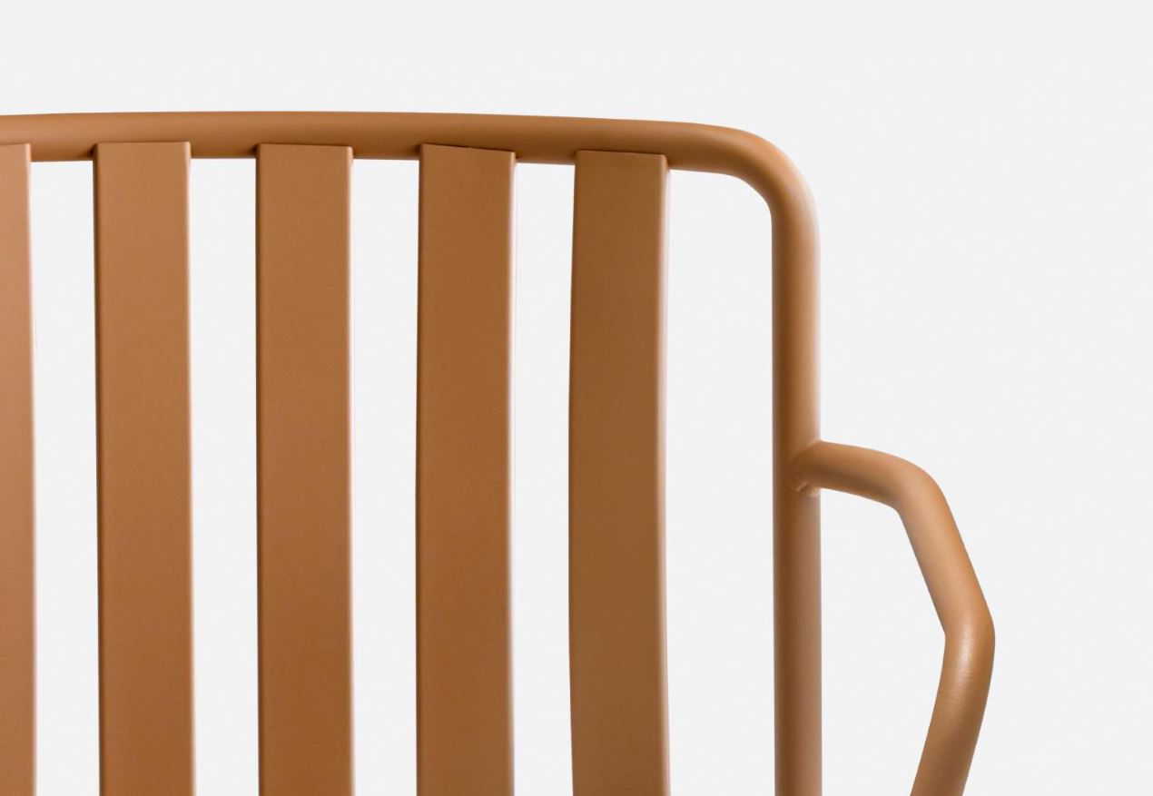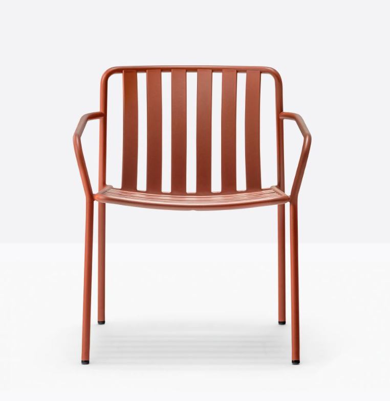 Sitzfläche und Rückenlehne definieren den Auflagepunkt in drei Dimensionen und garantieren so strukturelle Festigkeit und Ergonomie. Die Rückenlehne aus geformtem, gestanztem Blech erinnert an gleichmäßig angeordnete vertikale Latten, die mit den horizontalen Latten der Sitzfläche in Dialog treten und ein charakteristisches Muster schaffen. Coney eignet sich sowohl für Entspannungsbereiche im urbanen Raum als auch für die Ausstattung von Restaurantterrassen und privaten Balkonen oder Gärten. Sitzkissen auf Anfrage, bitte kontaktieren Sie uns. Wir beraten Sie gerne. Vertretung Pedrali Schweiz St.Gallen