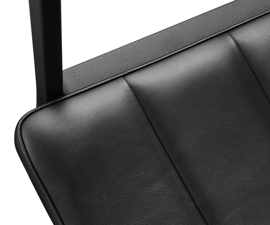 Der Drehstuhl Vipp Swivel ist für das Büro daheim oder Meeting-Räume geeignet. Der Stuhl weist einen polierten oder pulverbeschichteten Aluminiumrahmen mit bepolstertem Ledersitz und Rückenlehne auf. Auf mit Gleiterfüsse erhältlich. Die Basis mit vier Stuhlbeinen auf Fußbodenrollen ermöglicht ein Drehen des Stuhls um 360 Grad. Die Lederbepolsterung Black verfügt über einzigartige visuelle Merkmale.