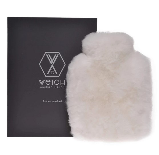 Die einzigartige WEICH-Wärmflasche, Bettflasche wertet die sonst so monoton triste Wärmflasche nicht nur optisch auf. Sie macht sie durch ihre hauchzarte Fellhülle auch zu einem haptischen Erlebnis. Was sie jedoch absolut einmalig macht, ist die Wärmespeicherung der innen hohlen Alpakafaser, die für einen langanhaltenden Wärmeeffekt sorgt. Weltweit einzigartig!