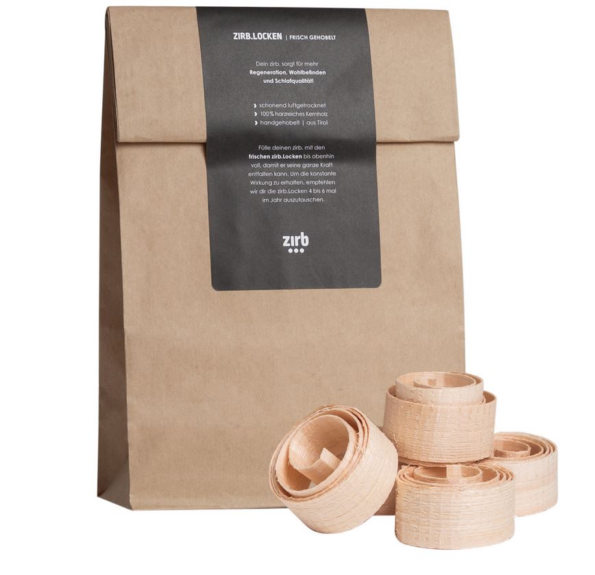 Für die zirb Locken werden ausschliesslich luftgetrocknetes Kernholz verarbeitet und werden frisch gehobelt.